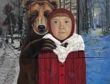 Sasha Yakovleva is a Toronto-based contemporary realist artist whose practice explores identity, memory, and resilience through painting and mixed media. Working in oil, acrylic, charcoal, fabric, beads, embroidery, and found objects, she often incorporates photography as a personal archive, layering cultural references and intimate narratives.